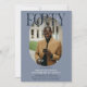 Convite moderno para aniversário de 40 anos de na moda. Design apresenta uma fotografia oval da aniversariante/rapaz, a elegante inscrição 'QUARTO' com o nome das pessoas no texto de assinatura no topo e um simples modelo de festa de aniversário que é fácil de personalizar com os seus próprios detalhes. As cores também podem ser alteradas para corresponder à decoração do seu próprio partido.