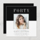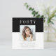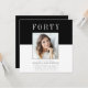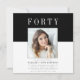 Design moderno minimalista de blocos coloridos com um modelo de foto no qual você pode adicionar sua bela foto, com preto no topo e inferior branco com texto simples moderno dizendo 40 em branco sobre fundo preto no topo também todos os detalhes em uma simples fonte moderna em preto no fundo. se você tem algum problema com este design ou gostaria dele em outros coloways, por favor, entre em contato comigo janine através do meu botão de mensagem do zazzle store em willow primavera Áudio.