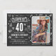 Foto divertida do 'Shhh... é um Convite de festas de aniversário de 40 anos Surpresa! Design apresenta um quadro calcboard rústico com rabiscos brancos. Basta carregar uma imagem e personalizar o modelo com seus próprios detalhes de evento.