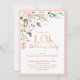 Convite de festas de aniversário de 40 anos de mulher moderna e elegante, com um belo motif floral cor-de-água rosa no canto superior, com "aniversário de 40 anos Party" e a parte posterior do cartão em folha de ouro fosca e mate, e o nome em texto dourado correspondente. Bordado a rosa. Copyright Elegant Invites, todos os direitos reservados.
