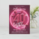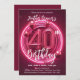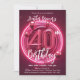 Convite Aniversário de 40 anos de Neon Rosa Vibrante com B