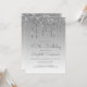 Este convite de aniversário de 40 anos de tendência apresenta uma borda cintilante cintilante de falso prateado e fundo azul ombre. As palavras "aniversário de 40 anos" e o nome do convidado de honra aparecem no roteiro casual de cinza prateada, com o resto do texto personalizável na fonte sans serif. No verso aparece o mesmo design de gota-gota prateada.