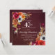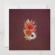 Lindas flores de outono decoram dois cantos deste convite. Rosas vermelhas, flores de terracotta e peões brancos misturam-se com folhas verdes e folhagem. As flores e o pop branco moderno contra o fundo vermelho burgundy. Este item faz parte da coleção Flores de Quedas de Borgonha.