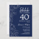 Convite para aniversário de 40 anos de Surpresa Branca de marinho. A design feminina moderna minimalista apresenta sotaques botânicos e letra de script de tipografia. Simples cartão de convite floral perfeito para uma festa surpresa na moda. Impressos convites Zazzle ou modelo de impressão digital instantânea para download.