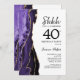 Convite de festas de aniversário de 40 anos surpresas roxo, branco e ouro agata. Elegante design moderno com aquarela agate marble geode background, faux glitter gold e typografia script font. Trendy convida o cartão perfeito para uma comemoração de dia das mulheres na moda. Impressos convites Zazzle ou modelo de impressão digital instantânea para download.