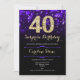 Convite de festas de aniversário de 40 anos surpresa. Design púrpura elegante com ouro brilhante. Apresenta na moda diamante, luzes e fontes de script. Homens ou mulheres convidam no dia. Perfeito para uma festa de aniversário adulta na moda. Personalize com seus próprios detalhes. Envie-me uma mensagem se precisar de mais personalização. Impressos convites Zazzle ou modelo de impressão digital instantânea para download.