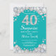 Convite aniversário de 40 anos de Teal e Diamante de Prata