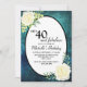 Convite de festas de aniversário de 40 anos de cor verde-clara-esbranquiçada / "40 e fabuloso" com rosas e uvas brancas.
