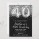 Convite Aniversário de 40 anos do balão preto brilhante pr