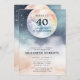 Aqui vai até 40 anos no Planeta Terra, Convite de festas Celestial da Noite Celestial... De sua posição em um belo céu noturno estrelado, um planeta de aquarela Terra guarda essa mensagem importante: "Aqui está até 40 anos no planeta Terra". Abaixo do céu azul celeste, nuvens brancas e terra arenosa criam um fundo elegante para exibir todos os detalhes da festa, incluindo o nome da honestidade de aniversário, a data, hora e local da festa, além das informações da RSVP. Um começo celestial para um aniversário de 40 anos. Todo o texto do convite pode ser facilmente revisado no modelo de personalização. O verso do convite repete o tema terra-aquarela e céu celeste, sem texto.