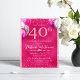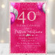 Este convite de festas personalizado apresenta um tema fabuloso de aniversário de 40 anos num fundo de design rosa-quente e folha de alumínio. Os balões de prata e de brilho rosa são colocados em qualquer dos lados do quadragésimo ano, que é impresso em um padrão de brilho de rosa claro, seguido das informações do evento e da localização. Uma banda glamourosa de diamantes é impressa abaixo do nome de convidado de honra. Confetti acentua as porções superior e inferior. É perfeito para um aniversário, aniversário ou outra ocasião especial.