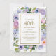 Convite Aniversário de 40 anos Dourada Floral Azul Elegant