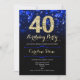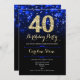 convite de festas aniversário de 40 anos. Elegante design azul real com ouro brilhante. Apresenta na moda diamante, luzes e fontes de script. Homens ou mulheres convidam no dia. Perfeito para uma festa de aniversário adulta na moda. Personalize com seus próprios detalhes. Envie-me uma mensagem se precisar de mais personalização. Impressos convites Zazzle ou modelo de impressão digital instantânea para download.