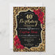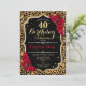 Convite para aniversário de 40 anos. Elegante design branco preto vermelho e branco com ouro brilhante falso. Apresenta a impressão de animais leopardo cheetah, fonte de script e rosas. Perfeito para uma bolsa mensageifesta de aniversario elegante. Pode ser personalizado em qualquer ano! Envie-me uma mensagem se precisar de mais personalização.