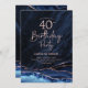 convite de festas marinho azul e rosa dourado aniversário de 40 anos. Elegante design moderno com cor azul-real de água agate marble geode background, faux glitter rosa gold e typografia script font. Trendy convida o cartão perfeito para uma comemoração de dia das mulheres na moda. Impressos convites Zazzle ou modelo de impressão digital instantânea para download.