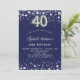 Um convite moderno, na moda e glamouroso para um aniversário de 40 anos. Um fundo azul marinho, decorado com estrelas de falso prata. Personalize e adicione seu nome e detalhes da festa. O número 40 é escrito com uma fonte de estilo de balão.