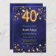 Convite aniversário de 40 anos marinho estrelas douradas a