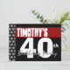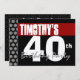 Este design moderno vermelho, do branco e do preto é uma maneira do divertimento de convidar povos a uma celebração do aniversário de 40 anos. Todo o texto é totalmente customizável. Você pode experimentar com os tipos de papel diferentes clicando do "na aba das opções convite" no canto de righthand superior. Eu recomendo o papel metálico hued do gelo que dá a seu convite do aniversário um shimmer e um brilho festivos. Bonito!