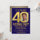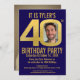Convite aniversário de 40 anos party marinho gold