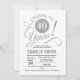 convite de festas aniversário de 40 anos em prata cintilante falso e branco. Apresenta a fonte do script de tipografia clássico. Saúde para 40 anos! Pode ser personalizado em qualquer idade. Perfeito para a celebração de um dia de mulher na moda