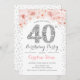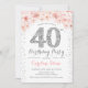 design Elegante do Convite de festas aniversário de 40 anos em prata brilhante falso, rosa e branco. Na moda floral com diamantes e rosas. Perfeito para uma comemoração de vidro. Envie-me uma mensagem se precisar de mais personalização.