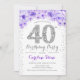 Convite aniversário de 40 anos - Prata branca - Roxo