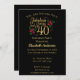 Convite aniversário de 40 anos preto e Dourado com Rosas