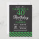 Surpresa aniversário de 40 anos com Chevron Negro e Verde. Chalkboard. Aniversário Adulto. Convidam o Homem ou a Mulher Bday. Para mais personalização, clique no botão "Personalizar" e use nossa ferramenta de design para modificar este modelo.