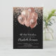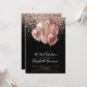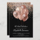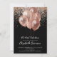 Balões de ouro rosa e convite para a aniversário de 40 anos de confetti. Design de preto e ouro negros e em forma de ouro com a moderna fonte de escrita branca. Personalizar para qualquer idade. 30, 40, 50, 60, 70, 80 e mais.