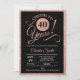 aniversário de 40 anos convite de festas para mulheres. Cartão de convite elegante a preto com folha de ouro de rosa brilhante falso. Apresenta a fonte do script de tipografia. Saúde para 40 anos! Pode ser personalizado em qualquer ano. Perfeito para uma celebração de um dia adulto.