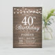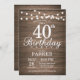 Convite Rustic aniversário de 40 anos com as luzes de cordas Fundo de madeira. 16º 18º 21rua 30 40º 50º 60º 80 90 100º, Qualquer idade. Para mais personalização, clique no botão "Personalizar" e use nossa ferramenta de design para modificar este modelo.