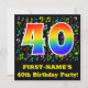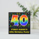 A frente deste design de convite de aniversário divertido, colorido e empolgante apresenta um grande número "40" com um padrão inspirado no gradiente do espectro arco-íris, junto com um nome editável e a mensagem "Partido aniversário de 40 anos!". Parte do fundo tem notas de música e padrões de símbolos divertidos e coloridos. A parte traseira apresenta informações/detalhes personalizados sobre o evento para o qual os possíveis convidados estão sendo convidados. Cartões de convite de aniversário divertidos e personalizados como este podem ser enviados a potenciais convidados de uma reunião realizada para comemorar o de um músico, um compositor de música, um cantor ou o aniversário de 40 anos de outra pessoa. [~Z0000427]