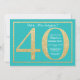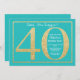 Convite para aniversário de 40 anos surpresa. A Festa de aniversário de Lixo Dourado e Teal Convide com Fundo Teal. Surpresa Aniversário. Aniversário Adulto. Homens ou Mulheres no Bday Bash Party.