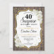 Convite para aniversário de 40 anos surpresa. Design feminino rústico com ouro brilhante falso. Possui padrão de madeira, rosas brancas, fonte de script e confetti. Perfeito para uma bolsa mensageifesta de aniversario elegante. Pode ser personalizado para mostrar qualquer idade. Envie-me uma mensagem se precisar de mais personalização.