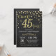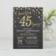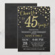 Convite de Aniversário de 45 anos de Casamento Quadro Negro e Dourado. Quarenta e cinco Anos de Casamento. Fundo de Diamante Brilhante Preto e Dourado. Confetes Dourados. Aniversário de Adulto. Festa de Aniversário de Homem ou Mulher. Para personalizar ainda mais, clique no botão "Personalizar" e use nossa ferramenta de design para modificar este modelo.