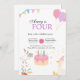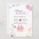 Faça a festa planejar uma brisa com este convite de aniversário personalizável! Adorado com um tema adorável e brincalhão, completo com um pato que veste chapéu de festa segurando um presente, um bolo festivo de aniversário, e confetti e balões espalhados. O texto "Avery é quatro" pode ser facilmente personalizado para ajustado de qualquer nome e idade. Personalize todos os detalhes, incluindo a data do evento, a hora, o endereço do local e o contato RSVP. O layout limpo e elegante garante que todos os detalhes importantes do evento sejam apresentados de forma elegante.
