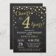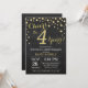 Convite de Aniversário de 4 anos de Casamento Quadro Negro e Dourado. Quarto Aniversário de Casamento. Fundo de Diamante Brilhante Preto e Dourado. Confetes Dourados. Aniversário de Adulto. Festa de Aniversário de Homem ou Mulher. Para personalização adicional, clique no botão "Personalize" e use nossa ferramenta de design para modificar este modelo.