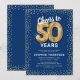 Eleve a celebração do seu marco com nossos convites de aniversário de 50 anos elegantes! Com um fundo azul versátil, glitter dourado cintilante, cinquenta balões de hélio dourados encantadores e um texto de aniversário de 50 anos moderno que é fácil de personalizar! Adicione seu toque único a este dia especial e deixe seus convidados antecipar um evento memorável.