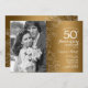 Convite de Aniversário de 50 anos Com Foto - Floral Branco Dourado. Design moderno com desenhos de esboço botânico e fonte de letra script. Cartão de convite simples e moderno perfeito para uma celebração de aniversário de casamento dourado e sofisticado. Pode ser personalizado para refletir qualquer ano de casamento. Convites impressos da Zazzle ou modelo digital para impressão instantânea.