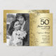 Convite Aniversário de 50 anos Com Foto - Floral Dourado