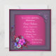 Convite de aniversário de cinquenta anos da mulher com redemoinhos florais elegantes de borboleta rosa choque e roxo.
