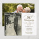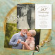 Personalize com a sua foto de casamento favorita e os detalhes da sua celebração especial de aniversário de 50 anos de casamento dourado em tipografia dourada chique. O verso apresenta uma segunda foto do casal feliz agora. Concebido por Thisisnotme©