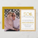 Este convite de celebração de aniversário de 50 anos de casamento elegante apresenta uma moldura de foto vertical e é acentuado com uma borda de brilho dourado falso. O texto personalizado permite que você adicione os detalhes do seu convite.
