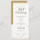 Um convite e cartão de resposta tudo-em-um para você personalizar com os detalhes da sua celebração de aniversário de 50 anos de casamento dourado em tipografia dourada chique. O verso apresenta confetes de coração dourados. O convite inclui um cartão de RSVP que pode ser destacado e detalhes de informações do convidado. Desenhado por Thisisnotme©
