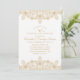Convites com visual dourado elegante para aniversário de 50 anos de casamento. Personalizados com os detalhes da sua celebração. Apresentam bela renda com visual dourado, tipografia em um fundo branco. Se desejar, você pode facilmente alterar as cores do fundo e do texto. Este convite de aniversário de casamento foi projetado por http://www.superdazzle.com
