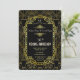 QUALQUER IDADE! Design exclusivo e vintage de cartão dourado do Grande Gatsby dos anos 20, apresentando uma moldura dourada antiga, ouro falso, preto e uma paleta de cores de abordagem branca (texto), iniciais. Use a ferramenta Personalizar para adicionar suas informações. Para itens correspondentes, visite minha Coleção de Casamento do Grande Gatsby dos anos 20