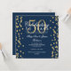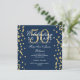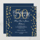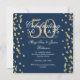 Elegante modelo de convite de festa de aniversário de 50 anos de casamento com confetes brilhantes dourados e azul marinho. Com destaque para confetes brilhantes dourados.