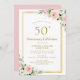 Convite aniversário de 50 anos de casamento dourado e rosa
