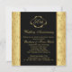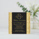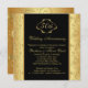 Convite de Aniversário de 50 anos de casamento dourado floral e preto. Os itens correspondentes são mostrados abaixo: