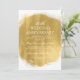 Elegante convite de festa de aniversário de 50 anos de casamento com sofisticado motivo de pintura dourada, nome e data personalizados e texto adicional.